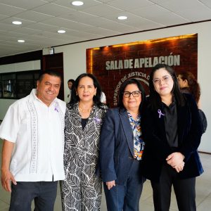 Como parte de estas acciones, la estatua de la Diosa Temis fue iluminada de color morado y, desde el primer día del mes, fue colocado también un moño morado en el edificio principal del Poder Judicial, color que históricamente representa la lucha de las mujeres por la igualdad, el respeto a sus derechos y la erradicación de la violencia de género.